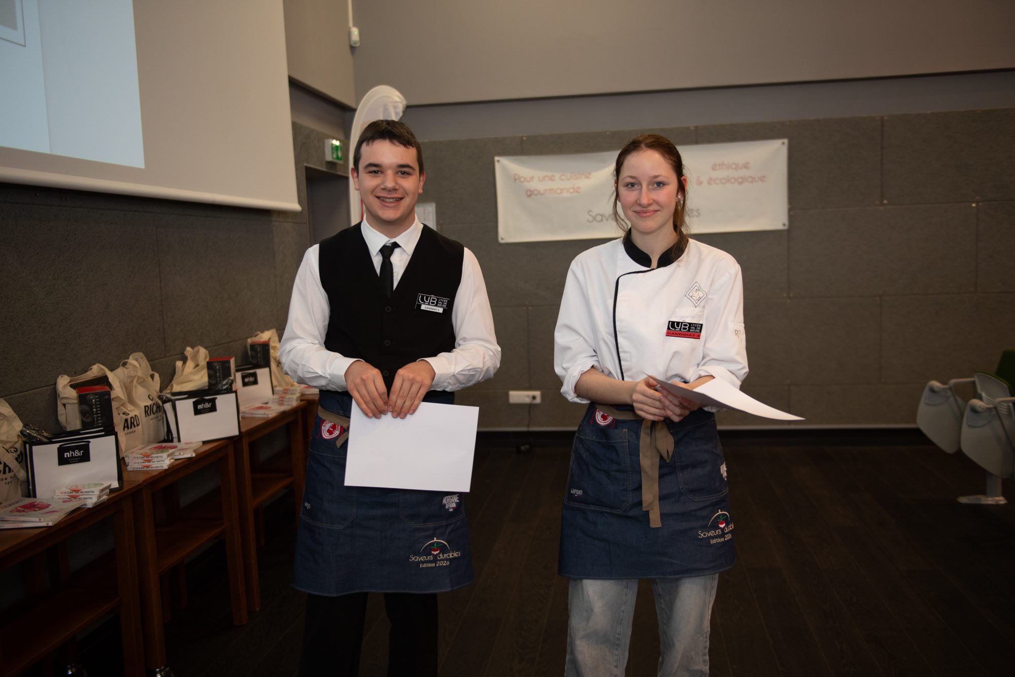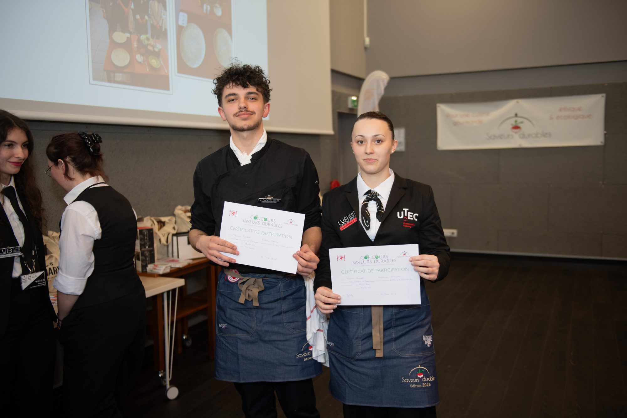 Le concours Saveurs Durables, porté par l’association Bon pour le Climat, accompagne depuis 11 ans les professionnels dans des pratiques responsables par la création de repas bas carbone, basés sur l’utilisation de plus de végétal, de produits de saison si possible issus de l’agroécologie locale. Il sensibilise aux enjeux d’une restauration durable, valorise la créativité des jeunes ainsi que la collaboration entre cuisine et salle et est ouvert à des binômes d’apprentis ou lycéens.