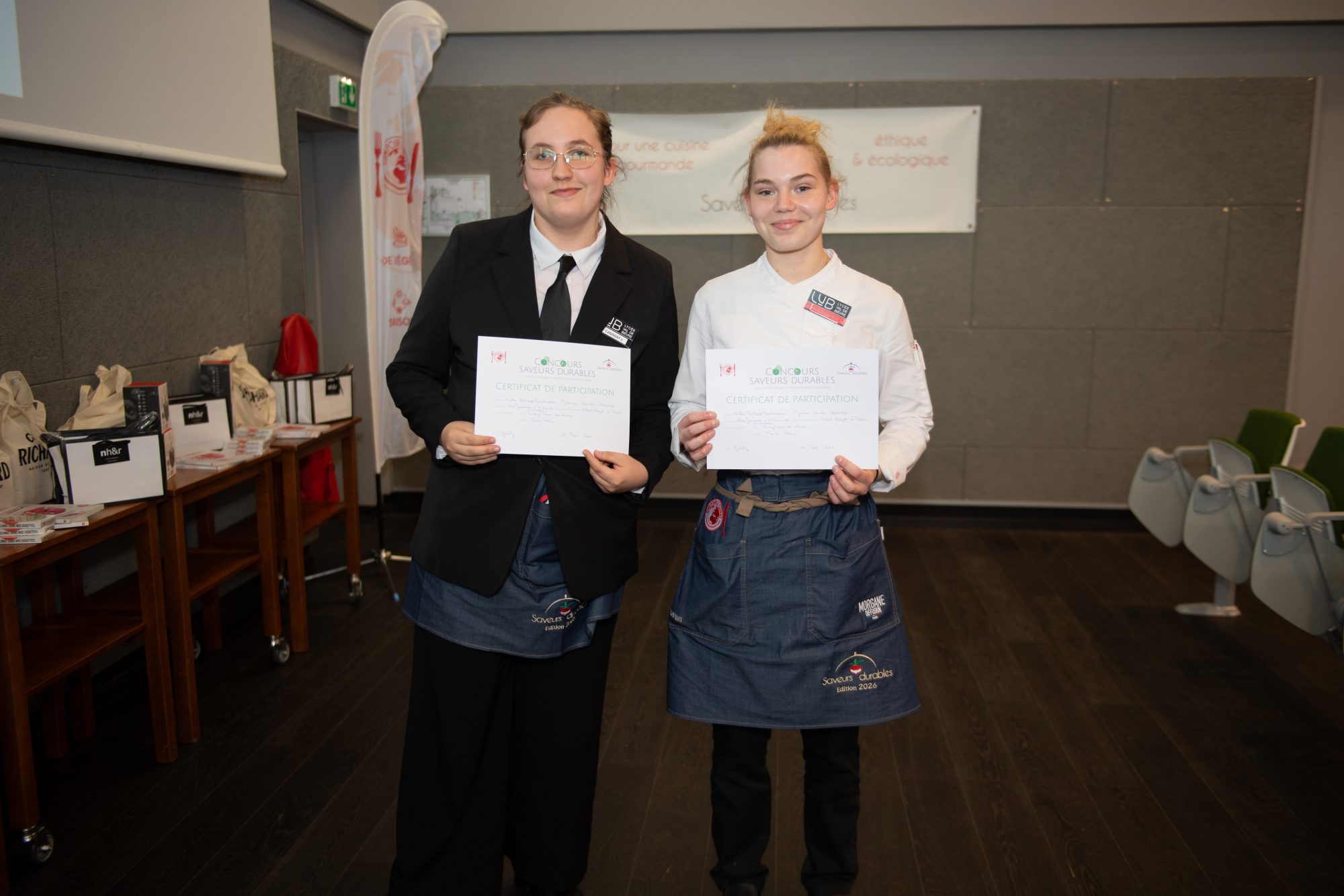 Anaëlle FENEON élève de service et Emma CHAMPEAUX élève de cuisine, accompagnées par :