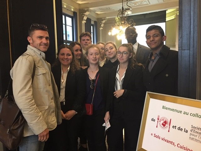 Les élèves de 1ere année de BTS MHR du lycée Guillaume Tirel accompagnés de leur professeur de cuisine Stéphane Lemarquis. Ils ont publié un article sur le colloque après le colloque : à lire ici